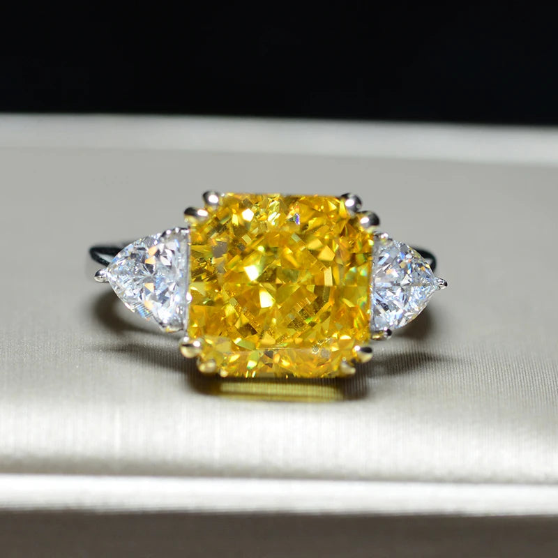 Découvrez la splendeur de cette bague luxe, un bijou qui se distingue par son design somptueux et son éclat spectaculaire. Son anneau, orné de zircones scintillantes sur les côtés, mène à une imposante pierre principale de 10x10 mm taillée en carré, qui attire tous les regards. Cette pierre principale en zircone, d'une clarté parfaite, est disponible en trois couleurs captivantes : blanc, rose et jaune, vous permettant de choisir celle qui correspond à votre personnalité.