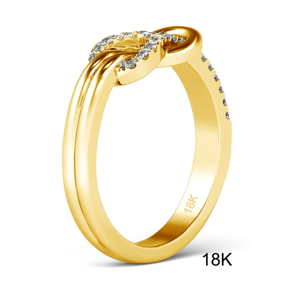 Découvrez cette bague or moderne au design sophistiqué et intemporel, dont l'esthétique est centrée sur le motif du nœud, synonyme d'union et de connexion. La bague présente deux brins d'or jaune richement polis qui se croisent délicatement au centre pour former un nœud élégant et asymétrique. Cette zone est rehaussée par un pavage minutieux de pierres scintillantes, créant un contraste éblouissant entre la douceur du métal et la vivacité des gemmes. La couleur chaude de l'or jaune, alliée à l'éclat froid des pierres, offre un visuel luxueux et remarquablement féminin.
