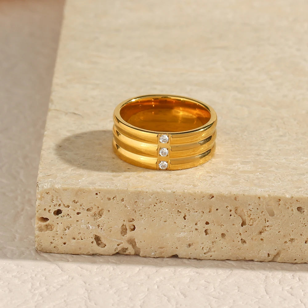 Conçue pour résister à l'épreuve du temps, cette bague trois anneaux est caractérisée par son incroyable résilience : elle ne ternit pas et est intégralement hypoallergénique, assurant ainsi un port agréable même pour les peaux les plus sensibles. C'est l'accessoire idéal pour sublimer une tenue de bureau classique en y injectant une touche de glamour, ou pour accompagner une robe de soirée, apportant une brillance étudiée.