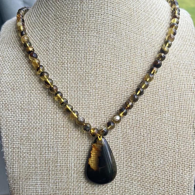 Bijoux 100% ambre véritable, certaines perles ont des traces naturelles ou végétales.