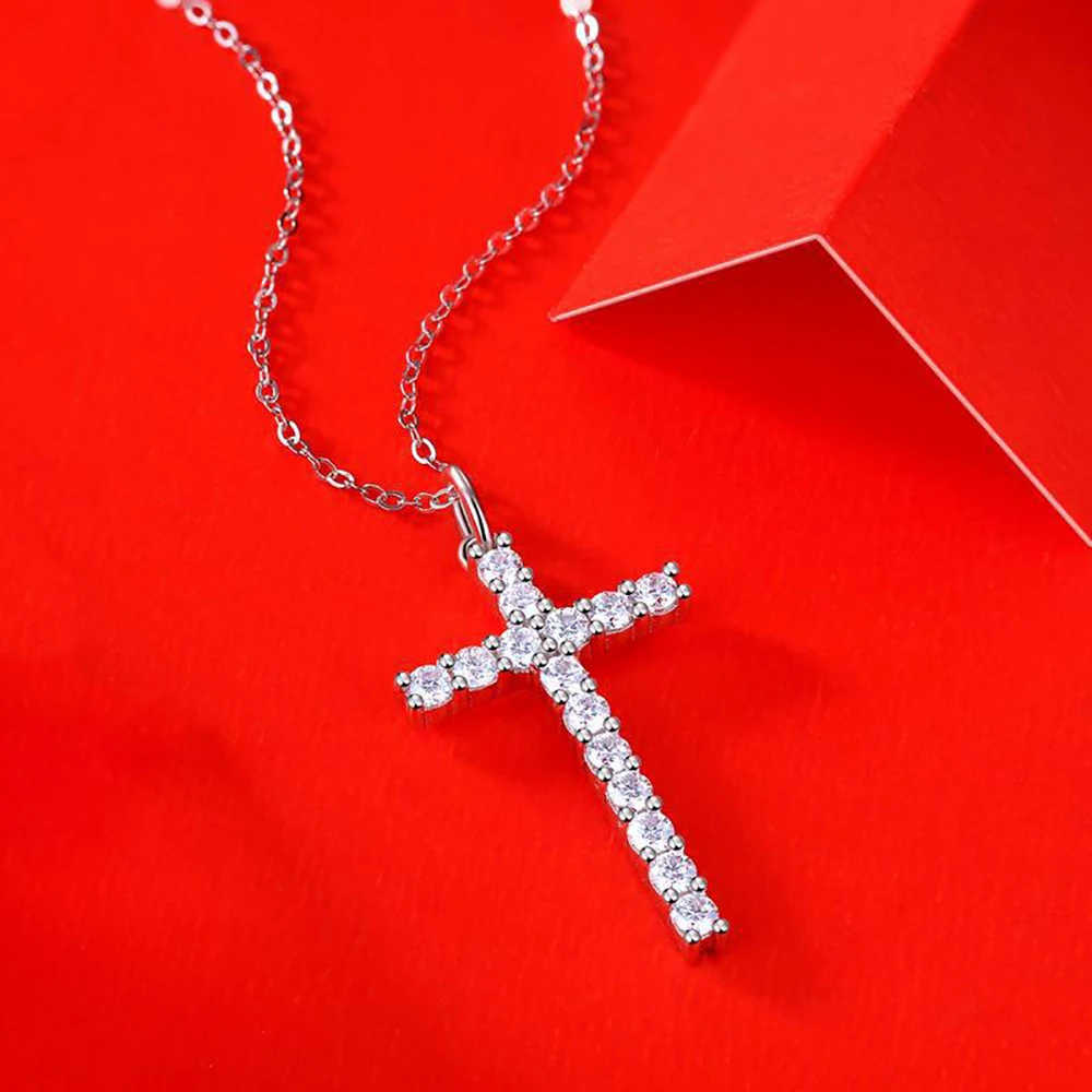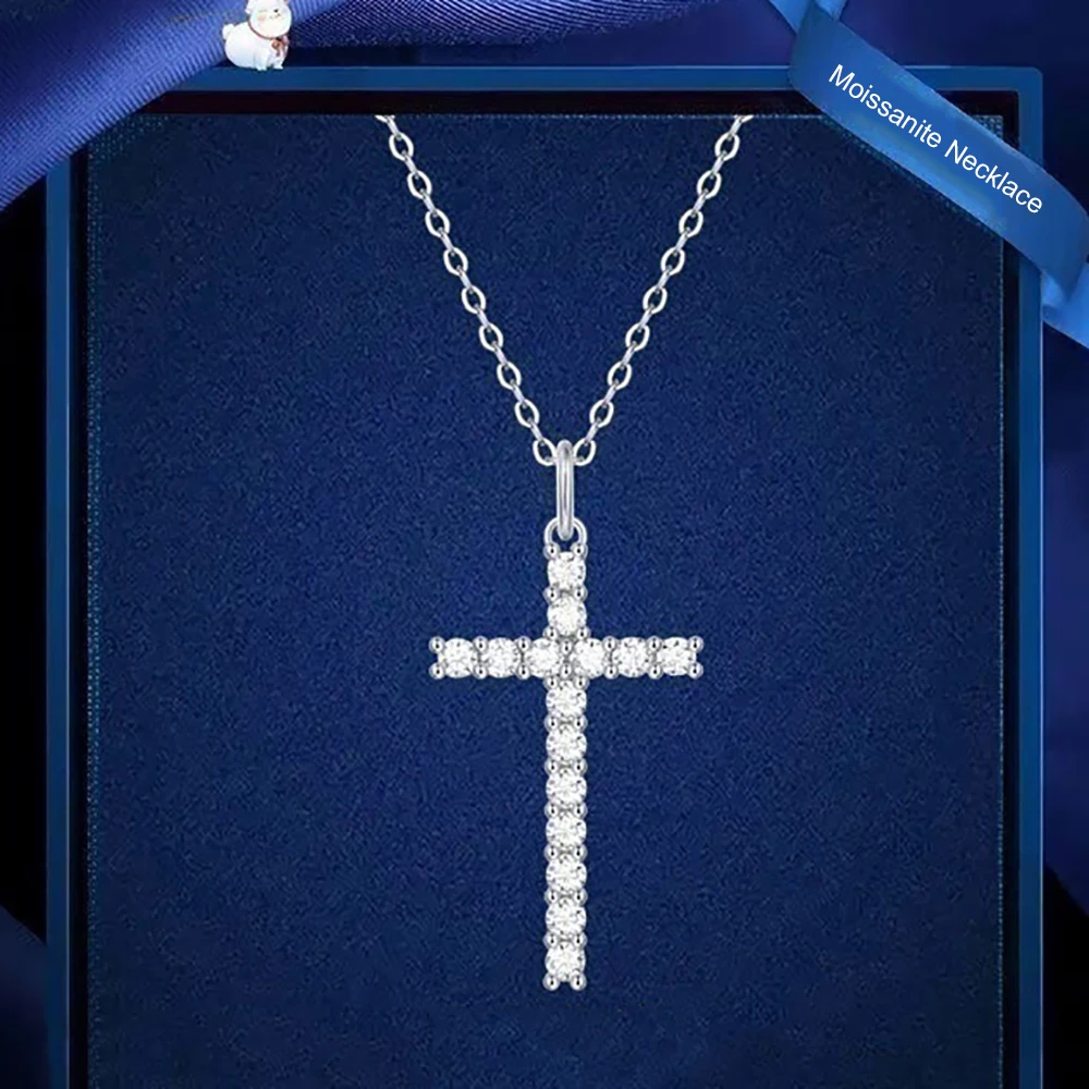 Collier pendentif croix en moissanite complète de 2,5 mm de couleur D Serenity pour femme en argent sterling S925 plaqué Pt950 Bijoux religieux chrétiens 0,9 cttw Collier croix en moissanite complète de 2,5 mm de couleur D pour femme Pendentif en argent sterling 925 Bijoux religieux chrétiens fins