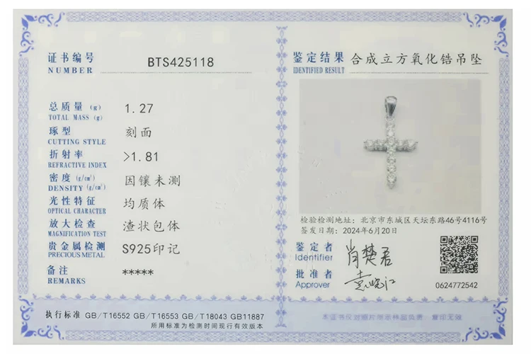 Type de certificat : CENTRE DE TEST DE GEMMES CUG DE PÉKIN