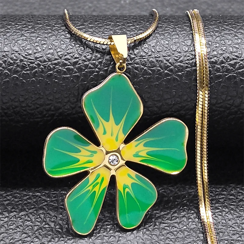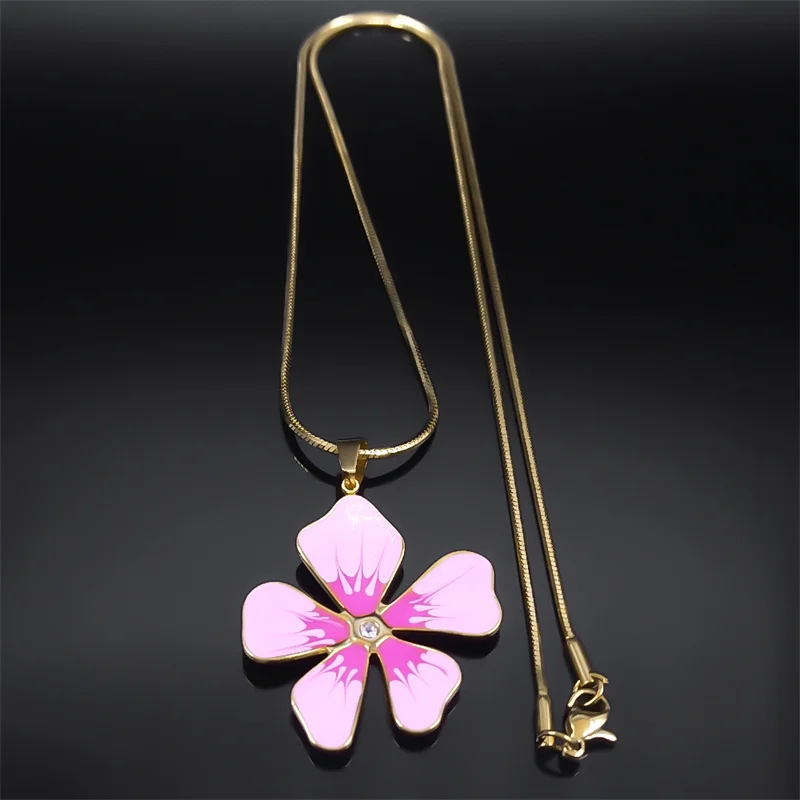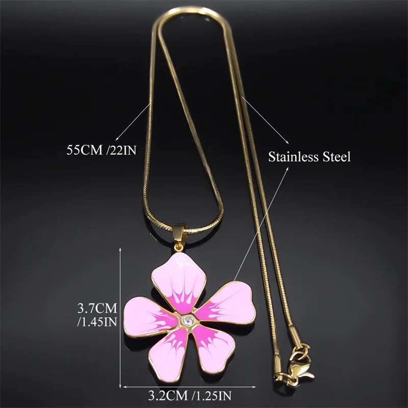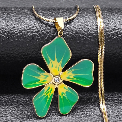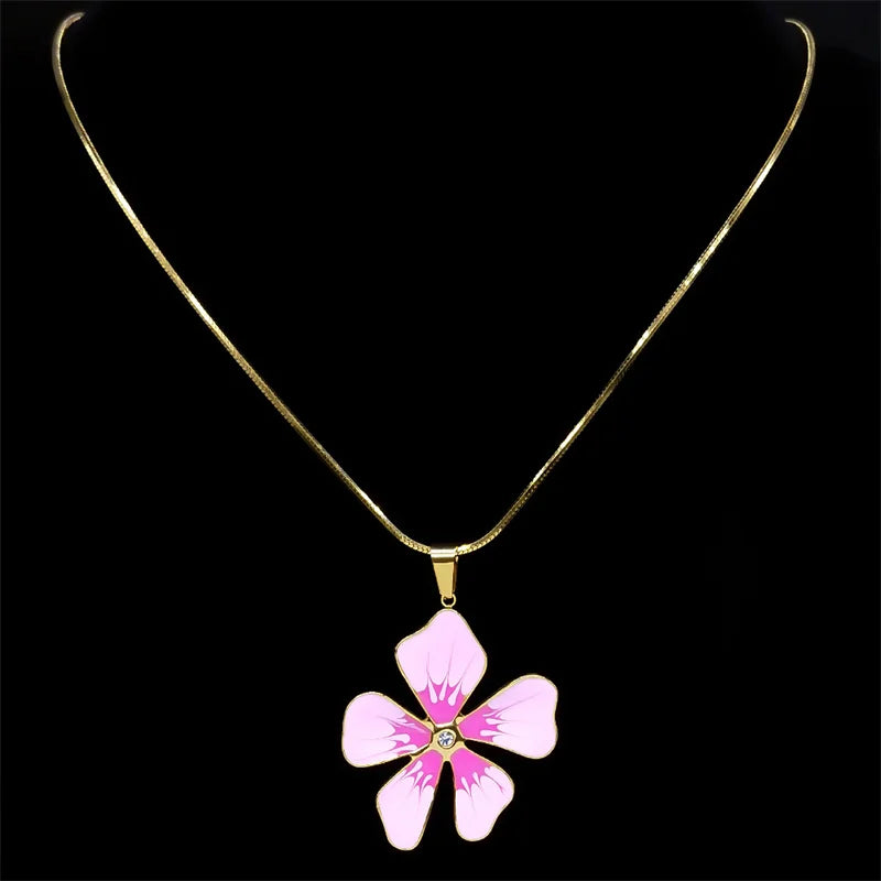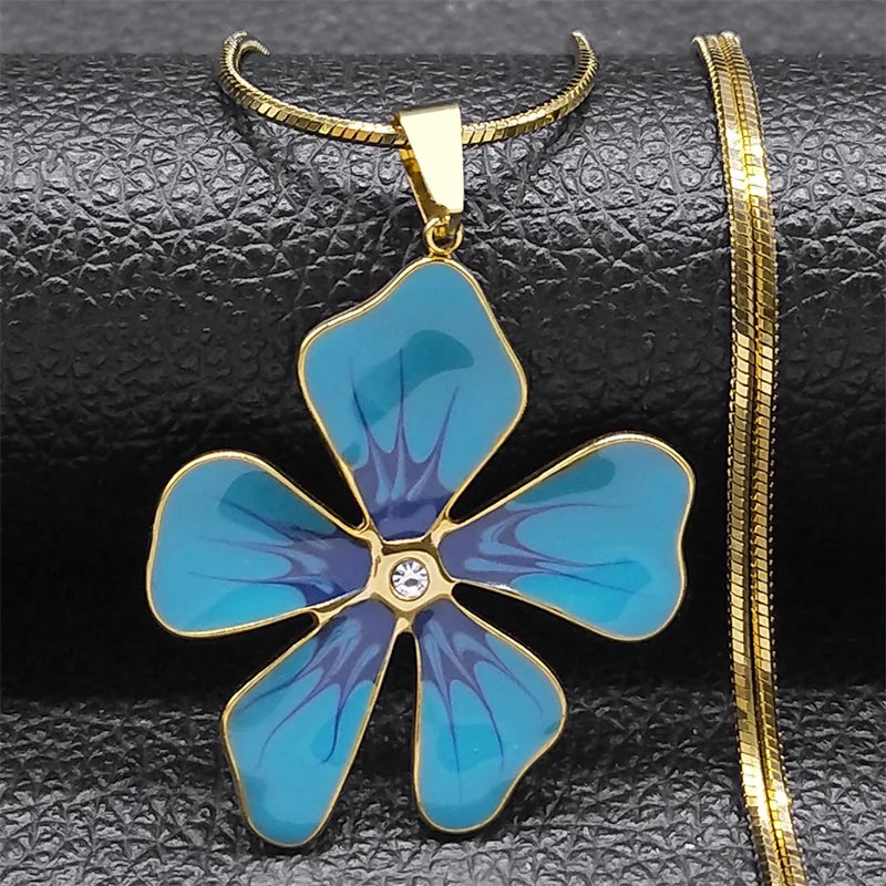 Collier avec pendentif en émail bleu et fleur esthétique pour femme et fille en acier inoxydable couleur or chaîne artistique pour femme