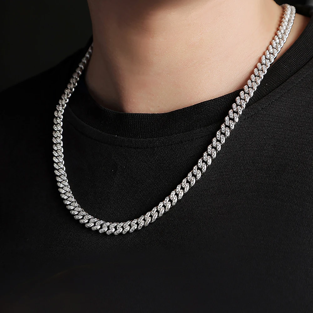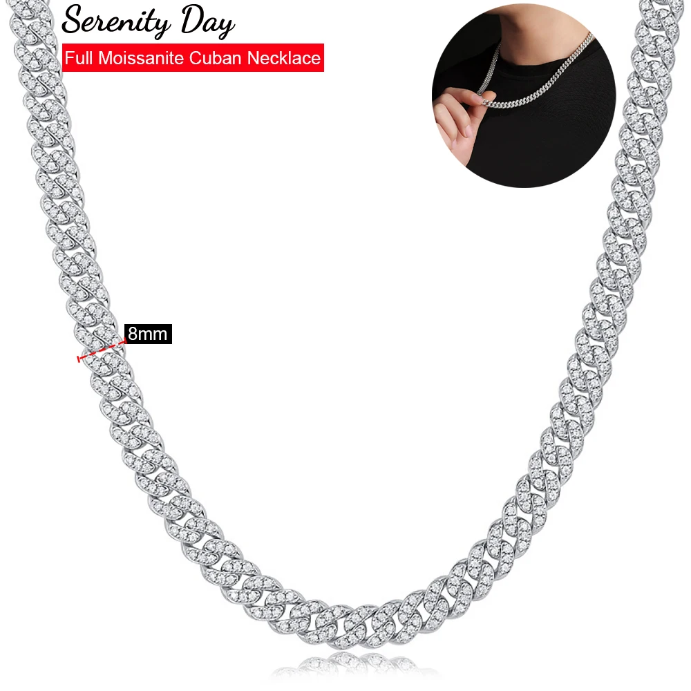 Collier cubain Serenity Day Real 1,2 mm en moissanite pour homme et femme en argent sterling S925 plaqué or blanc 18 carats