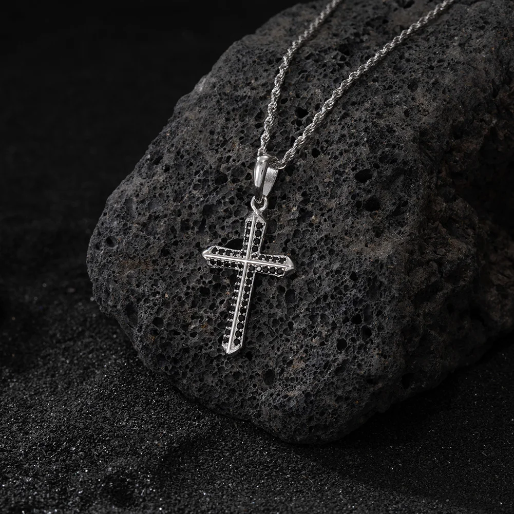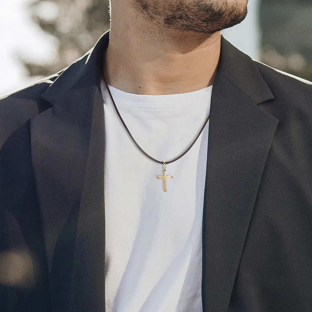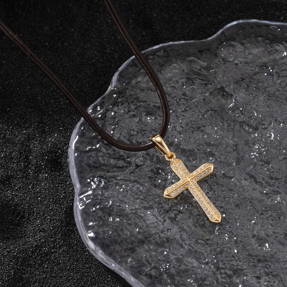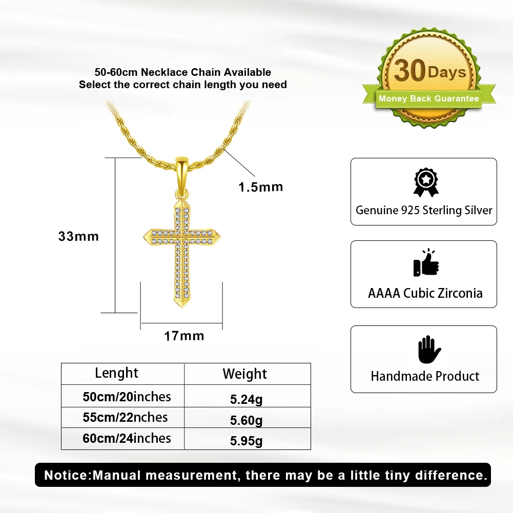 Collier avec pendentif croix en or 18 carats et zircone cubique transparent pour homme, collier en argent sterling 925, bijoux religieux hip-hop