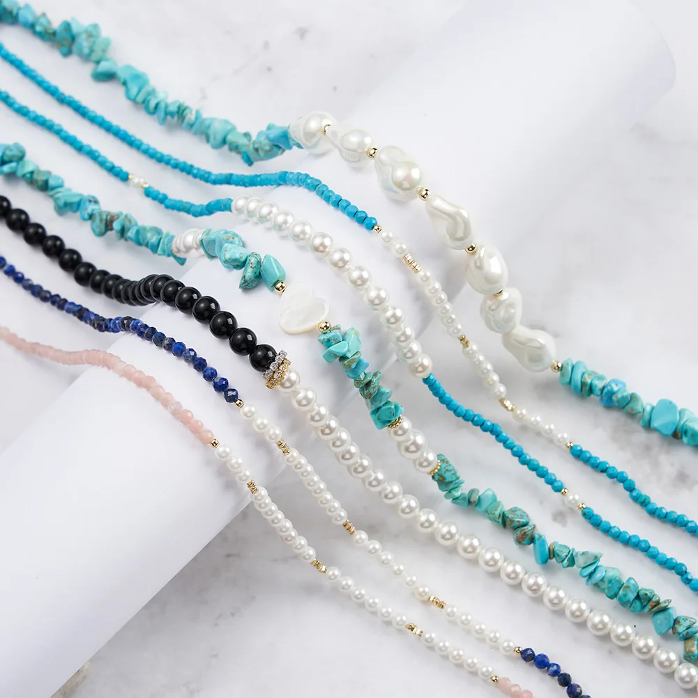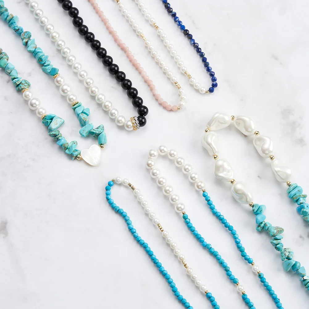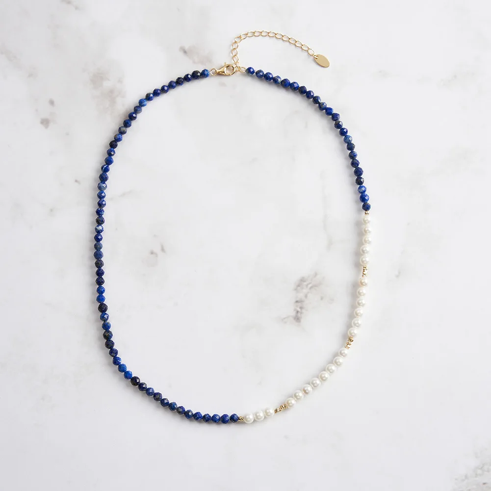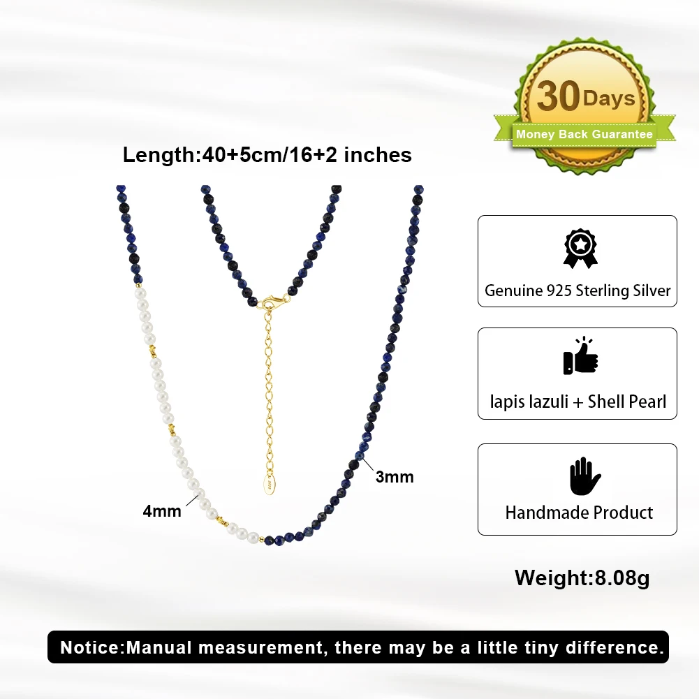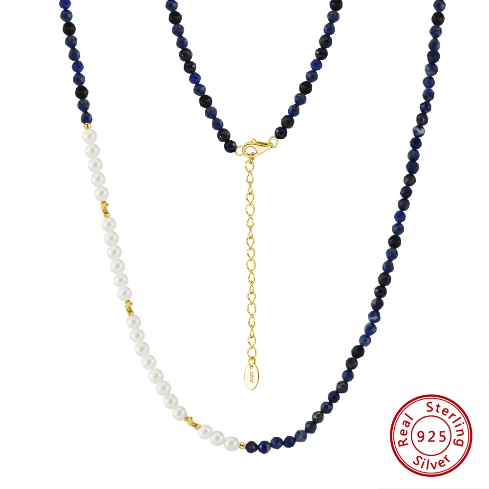 Collier ORSA JEWELS en argent sterling 925 et or 14 carats avec lapis-lazuli et perle de coquillage pour femmes et filles, bijoux de fête de mariage GMN53