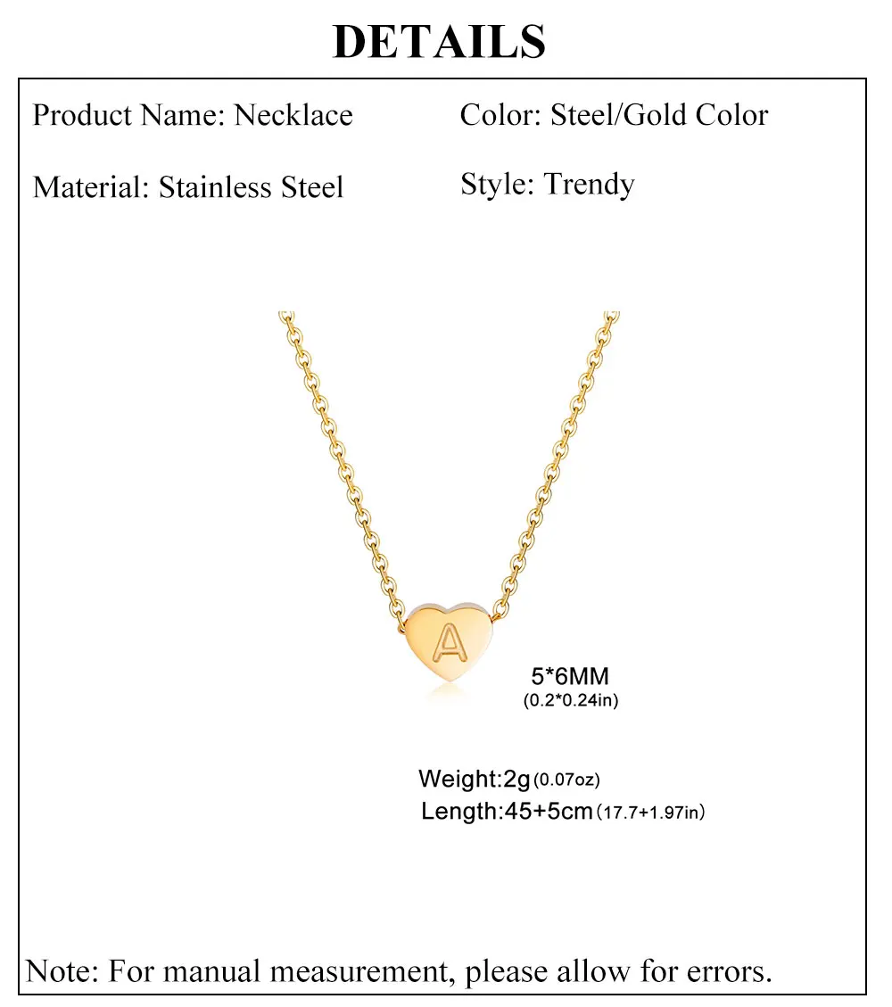 Colliers avec pendentif mini cœur avec initiales de A à Z