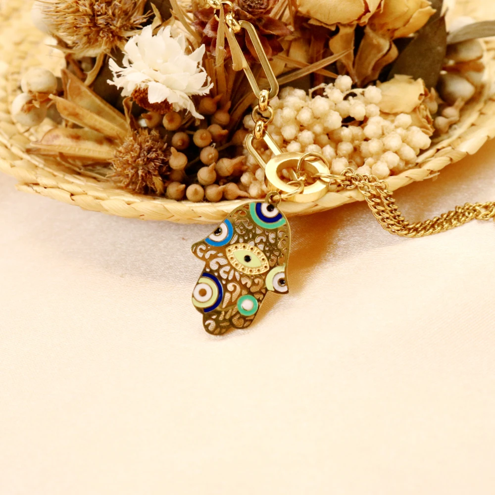 Collier avec pendentif en forme d'œil de palmier