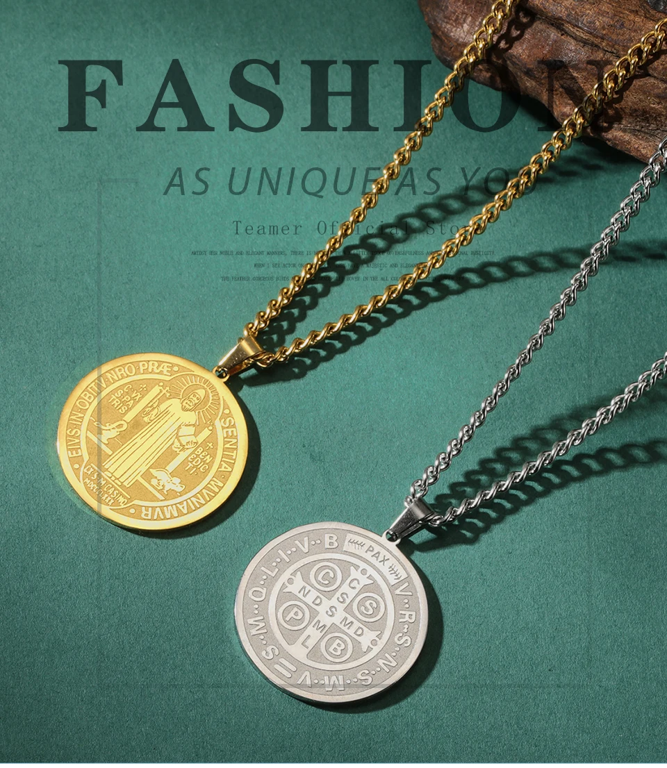 Article : collier avec pendentif médaillon catholique Saint Benoît
