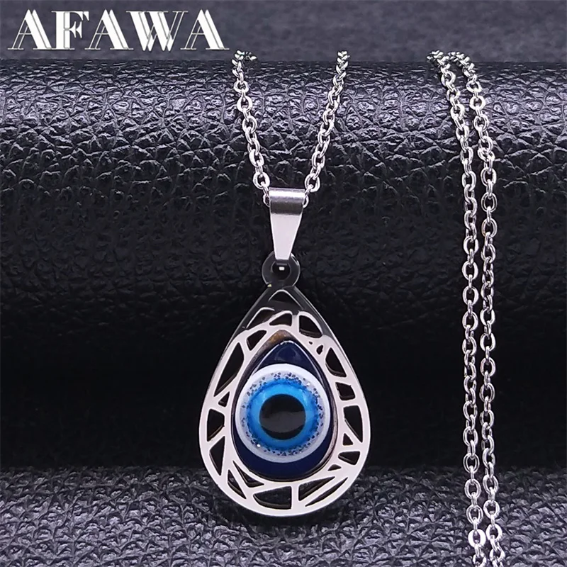 Collier pendentif œil bleu turc pour femme et homme en acier inoxydable couleur argent bijoux de protection amulette yeux porte-bonheur