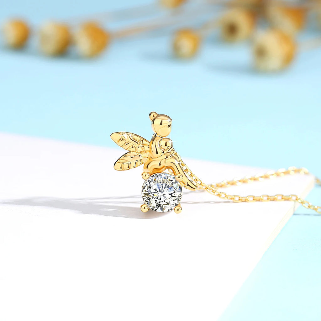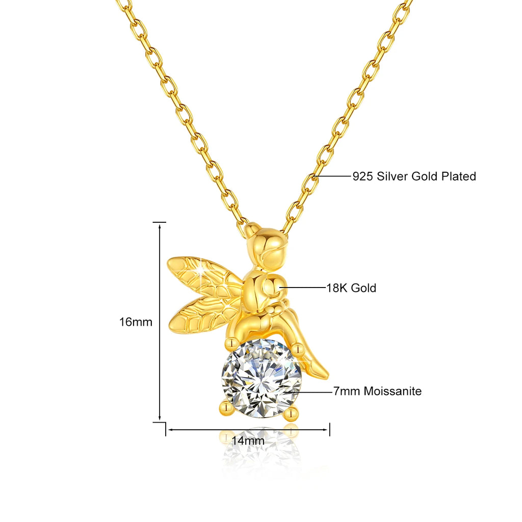 Collier avec pendentif en forme d'ange mignon en or 18 carats véritable et incrusté de pierres de diamant en moissanite pour femme, cadeau de Saint-Valentin, original et certifié