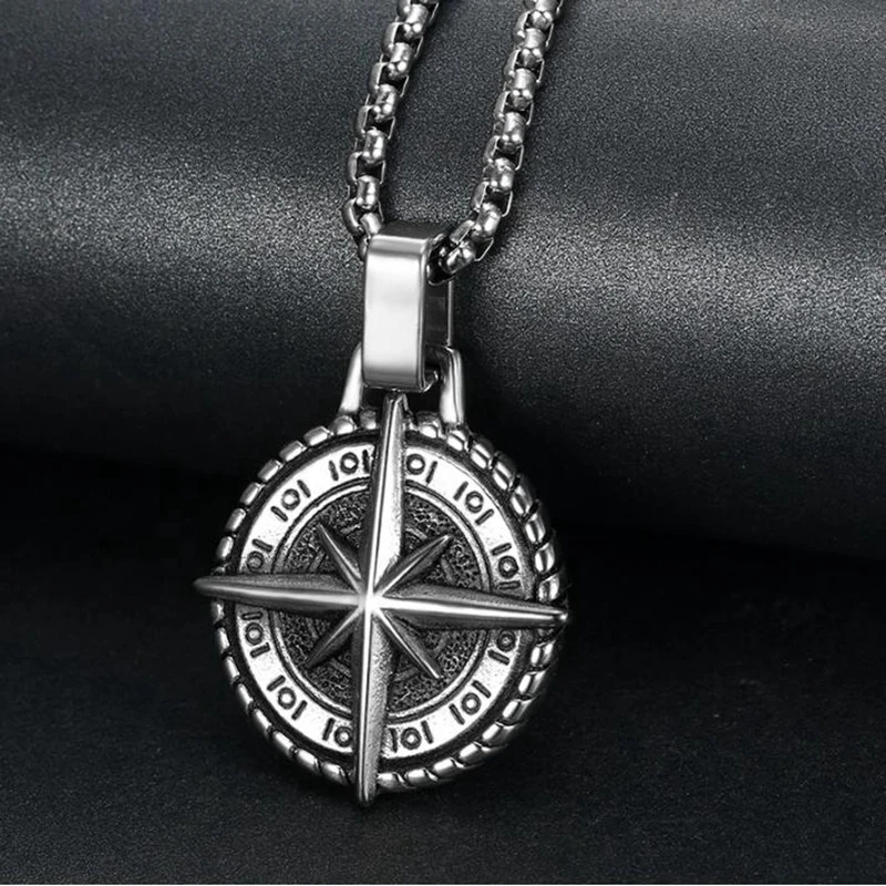 Collier pour homme en acier inoxydable avec pendentif rond en forme de boussole, style rétro punk rock goth...