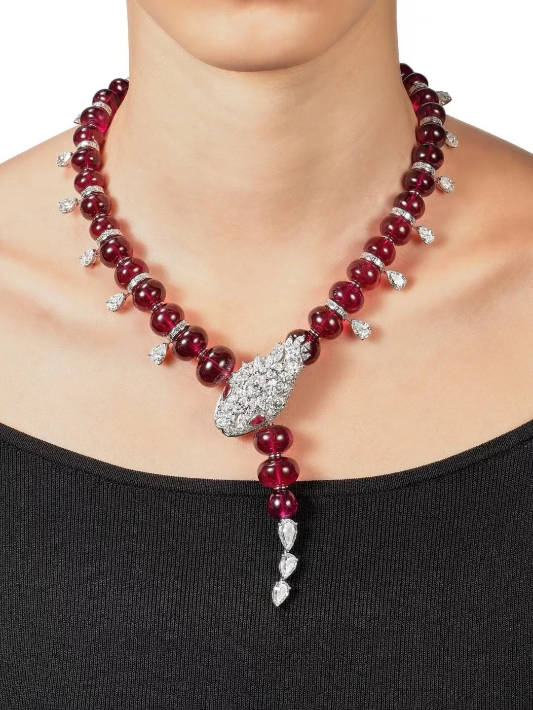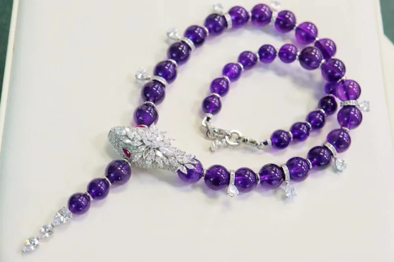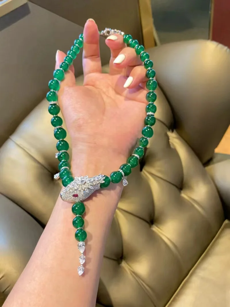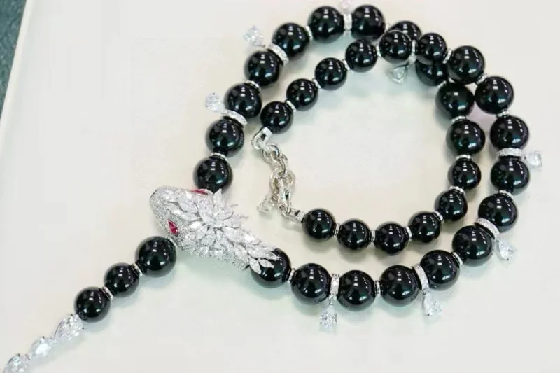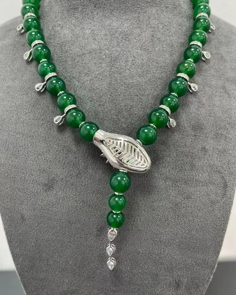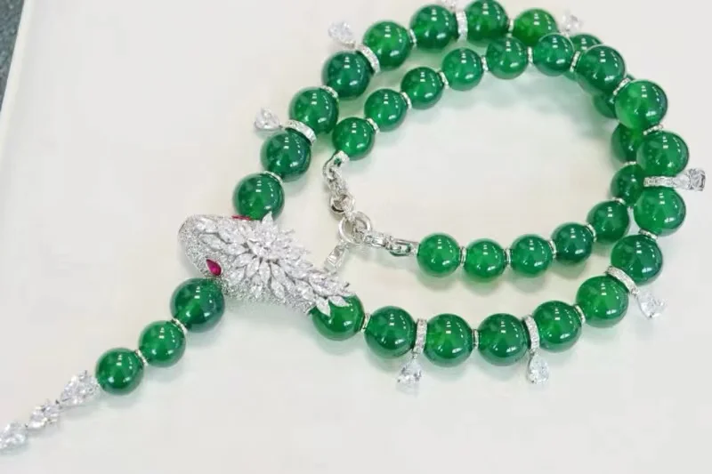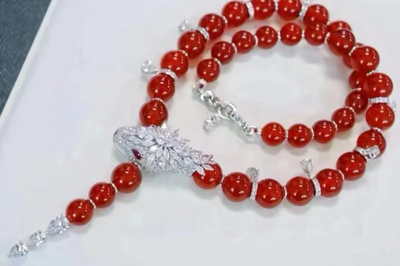 Solid 925 Sterling Silver Red Chalcedony Bead Gemstone High Carbon Diamond Snake Head Shapped Necklaces Designer Luxury Jewelry