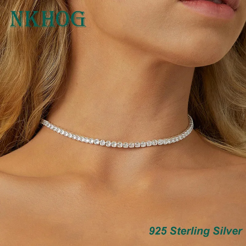 Collier de tennis NKHOG en zircon cubique de 2 mm pour femme et homme, plaqué argent S925, or 18 carats, haute teneur en carbone, diamant, chaîne ras du cou, cadeaux, bijoux fins