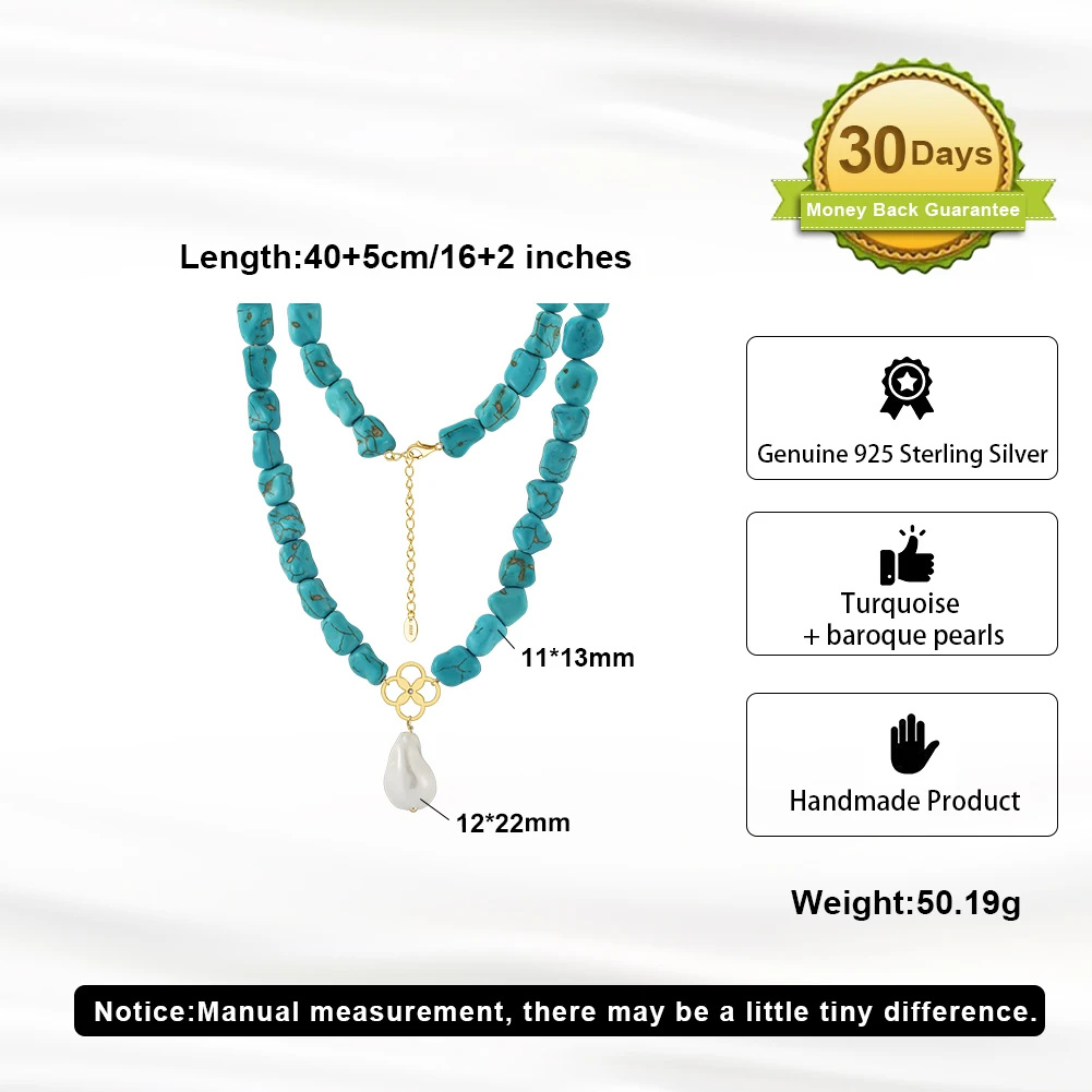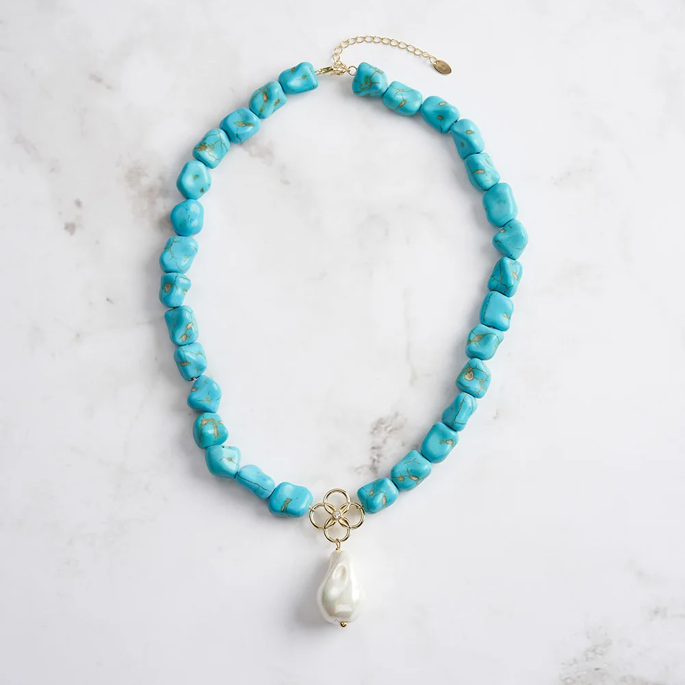 Collier avec pendentif en argent sterling 925 et turquoise avec perle pour femme