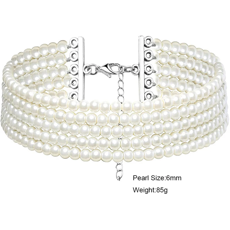 Collier ras du cou élégant multicouche en perles blanches pour femmes, collier de mariage fait à la main, bijoux vintage