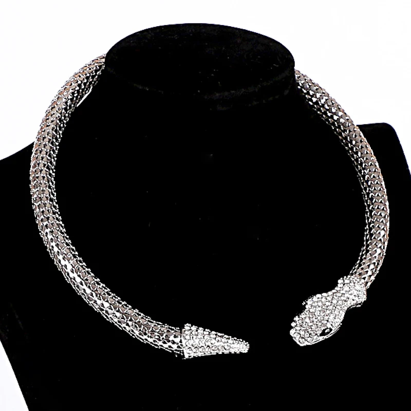 Collier ras du cou en forme de serpent plaqué or et argent pour femme Collier Femme Bijoux Collier ras du cou en cristal de pistolet noir